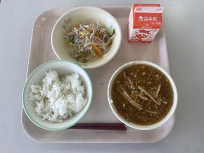 今日の給食は、春雨サラダ、マーボー豆腐でした。