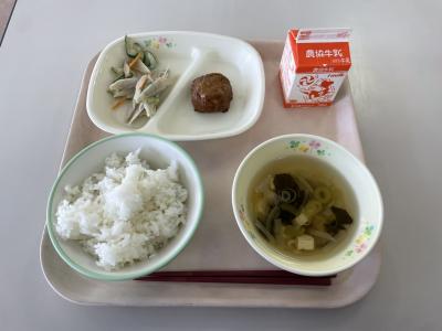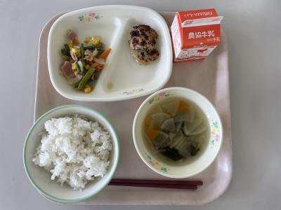 今日の給食は、鶏肉と野菜の焼きつくねでした。