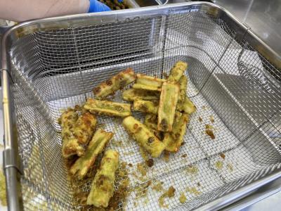 八十八夜に合わせて、ちくわ天ぷらの衣に緑茶を混ぜ込んだ、ちくわのお茶天ぷらを提供しました。