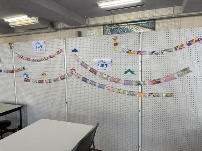 ランチルームに掲示しています。児童たちは興味深そうにこいのぼりを見ていました。