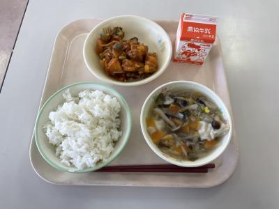 今日の給食は、とりチリソースでした。