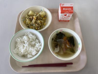 今日の給食は、じゃがいものインド風煮でした。