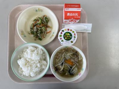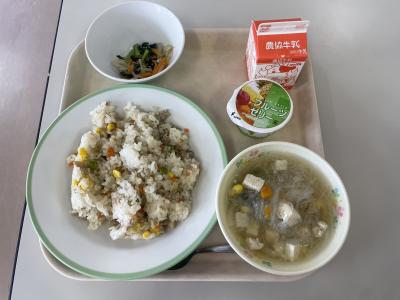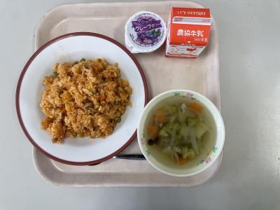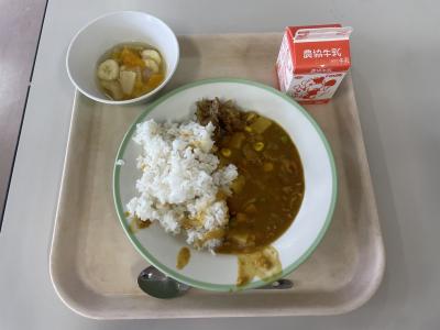 カレーライスとフルーツポンチは、児童らから大人気の給食です。
