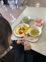 11日の給食は、6年生の児童のリクエストのオムライスでした。
