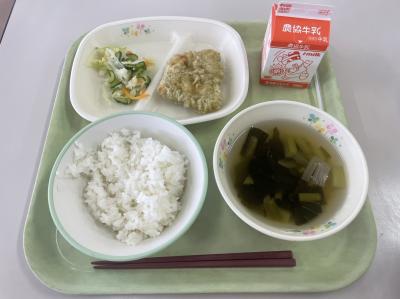 7日の給食は、6年生の児童のリクエストの磯辺鶏天でした。