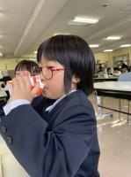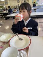 低学年の児童もストローを使わずに上手に牛乳を飲むことができました。