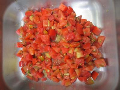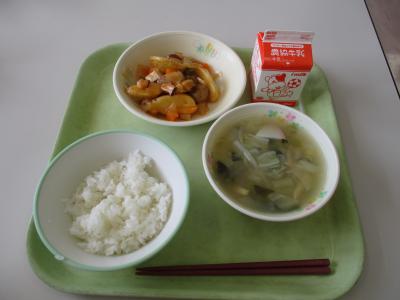トマトが苦手な児童が何人かいましたが、全員がんばって残さずに食べられていました。