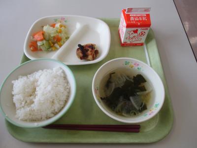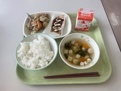 4日の給食は、珠洲産トマトを使用した、鶏肉のゴマ揚げトマトサラダでした。