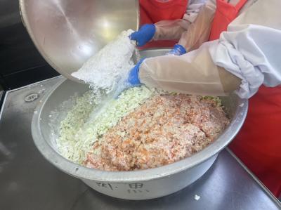 揚げギョーザのパリパリとした食感が児童らから好評でした。