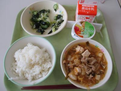 すき焼き風なので甘みもあり、低学年にも食べやすい辛さに仕上げました。