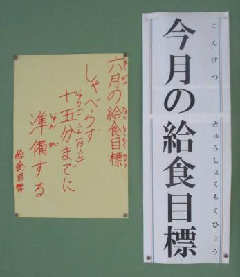 6月の給食目標は、「しゃべらず15分までに準備する」になりました。