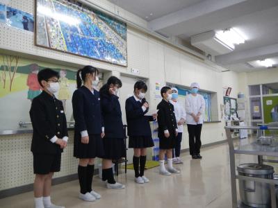 給食委員会から、調理員さんへ感謝の気持ちが伝えられました。