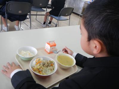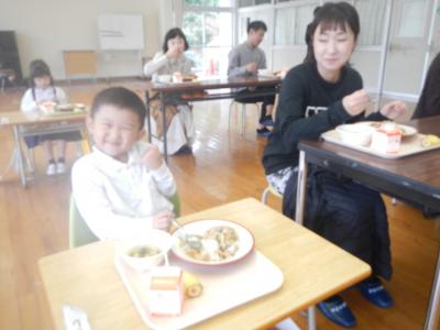 1年生の試食会では、子どもたちが好きなメニューに、大好きな家族が隣にいての給食ということもあり、いつもよりも少し多めに食べてくれました。