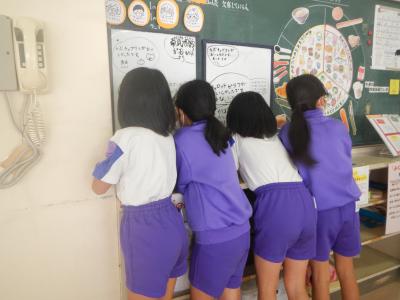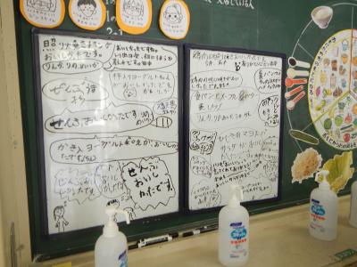 給食の感想を書くホワイトボードも、今日は月曜日ですが真っ黒になりました。