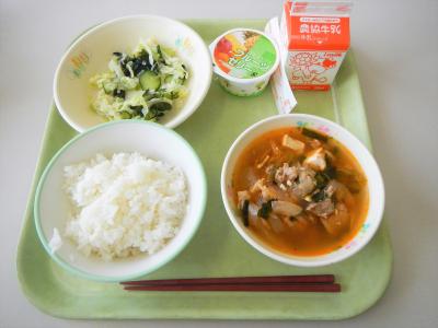 6/22の主菜・汁は、韓国風すき焼き、デザートはフルーツゼリーでした。