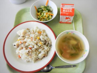 今日の主食はチキンピラフでした。