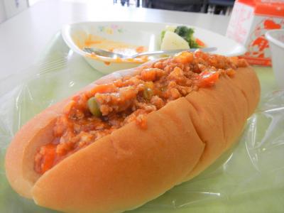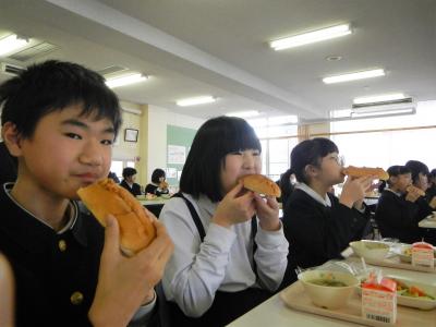 少しずつサンドして食べている子もいました。ハンバーガーに似ている味で、子どもたちには大人気でした。