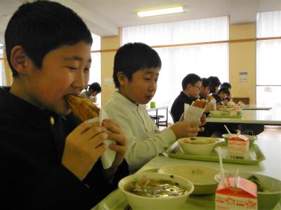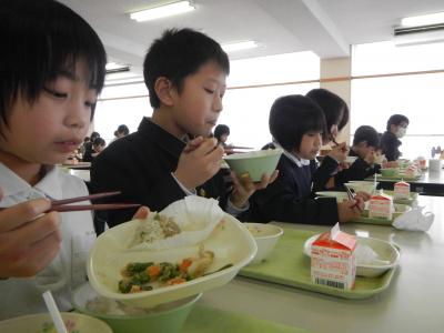 今年度最後のリクエスト給食で、子どもたちはおいしそうに食べていました。
