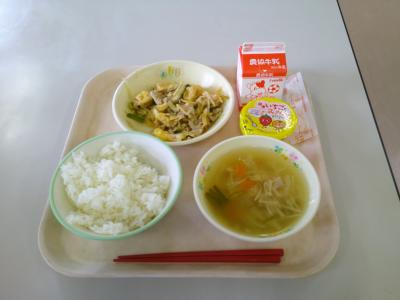 今日の給食は、豚キムチ炒めでした。