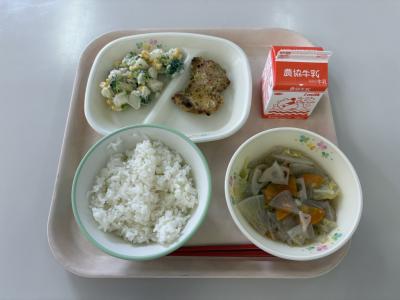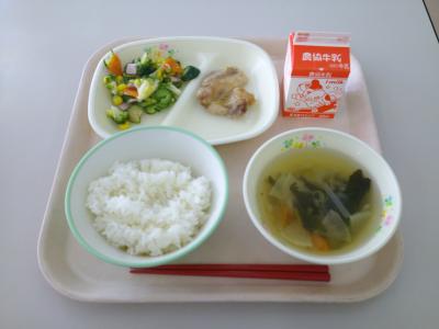 今日の給食は、鶏肉のレモンソースがけでした。
