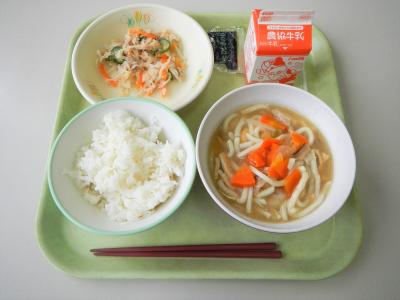 今日の給食の汁ものはあんかけうどんでした。