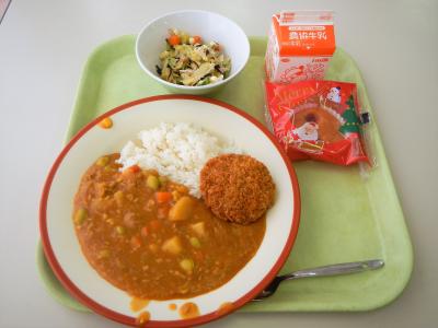 少し早いクリスマス雰囲気の給食献立となりました。