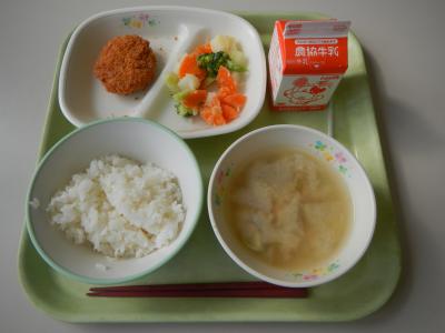 今日は若山小学校のリクエスト給食で、白玉だんごのおつゆが入りました。
