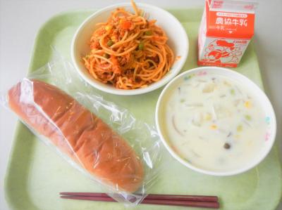 今日の給食はコッペパンでした。