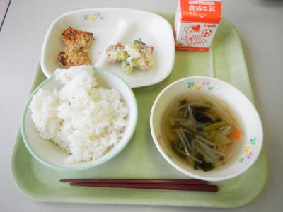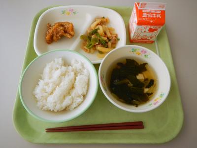 もも肉はやわらかくとてもおいしかったです。時間通りに食べ終わり、今日も残食なしでした。