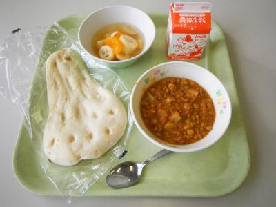 今日はナンとフルーツポンチがリクエスト給食でした。
