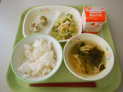 今日のしゅうまいは、5種の野菜が入ったしゅうまいでした。