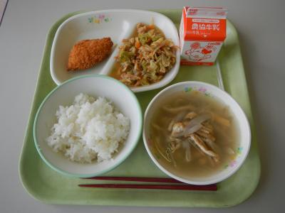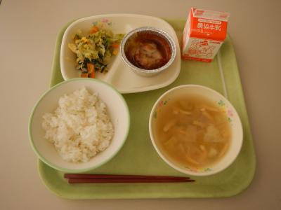 副菜のキャベツとえのきの煮びたしは、キャベツが苦手な子もすんなり食べられていました。