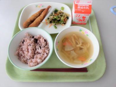 今日は食の大蔵ざらえアンケート結果のメニューの一つ「お赤飯」が献立に入っていました。