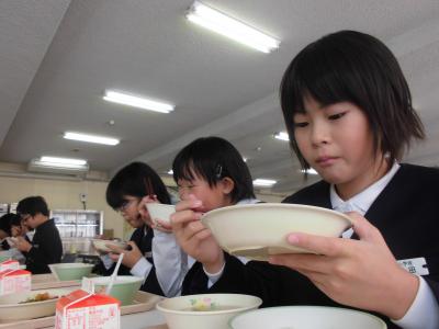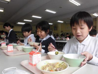 今日の「のっぺい汁」は、食の大蔵ざらえとして高学年が保護者へ昔なつかしメニューをアンケートした結果、取り入れたメニューです。