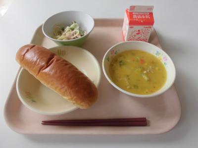 パンプキンシチューの中に入っているかぼちゃは、本校の5年生が苗を植えました。