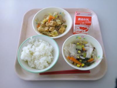 今日の給食は、豚肉と厚揚げのオイスターソース炒めでした。