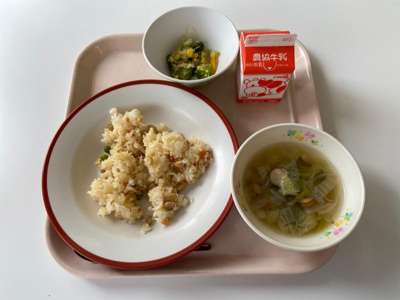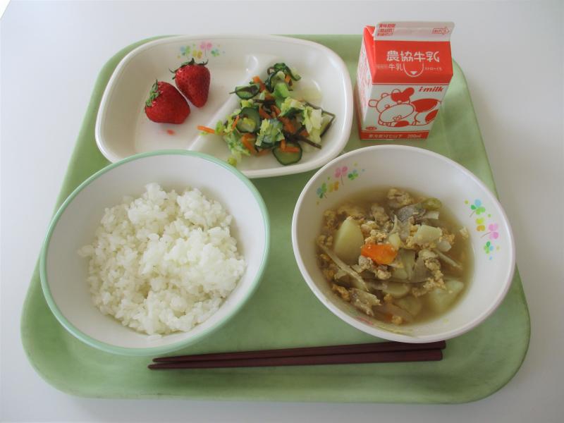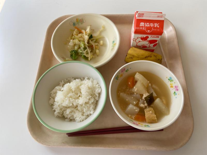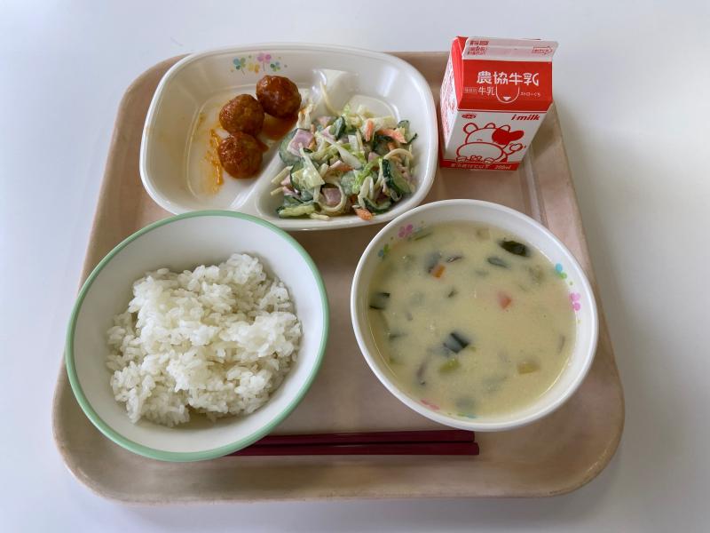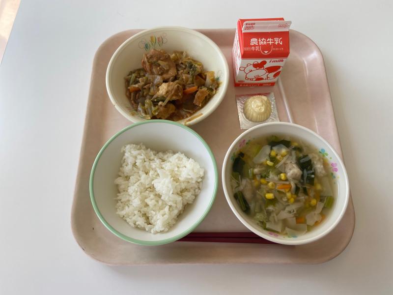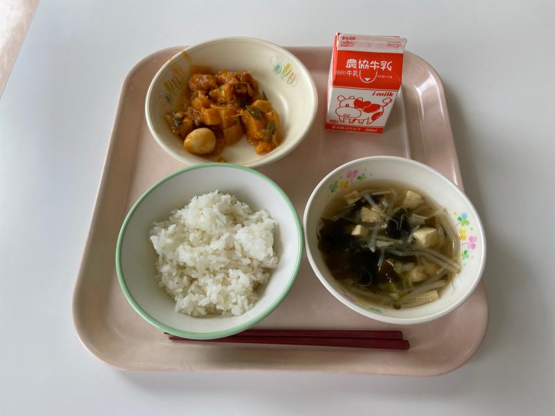 台風のような土日が終わって、はい楽しみな給食です~!