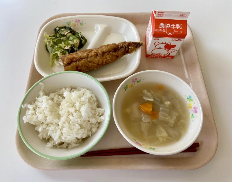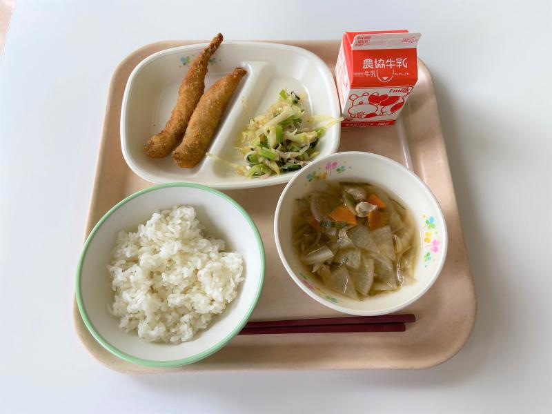 本日のメニューのメインは頭からしっぽまで全部食べられる「ししゃもフライ」でした。