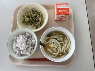 今日の給食は、五目うどんでした。