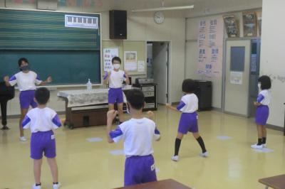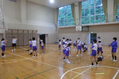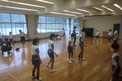 それぞれの縦割り班でオリジナルダンスをつくり、6年生がリーダーとなって練習しています。