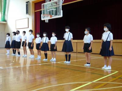 6年生から5年生へと引き継がれ、3年生も加わり新たな鼓笛隊が編成されました。