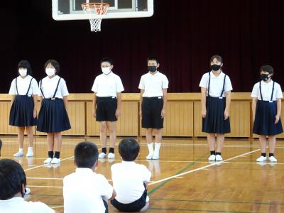 校歌を歌ったり、鍵盤ハーモニカを披露したりしました。
