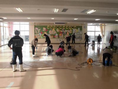 冬休みに職員作業でランチルームのワックスがけを行いました。