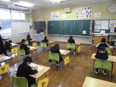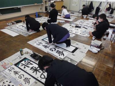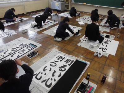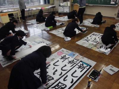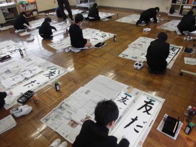 新年最初の行事である「書初め大会」が行われ、どの児童も集中して取り組んでいました。