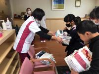 4月7日(木)あいずみデイケアさんより雑巾の寄付をいただきました。通所されている方が手縫いをされたもので、色とりどりの端切れがデザインされたものです。子どもたち5人と一緒にいただきに伺いました。校内の消毒の際に、使わせていただきます。ありがとうございました。