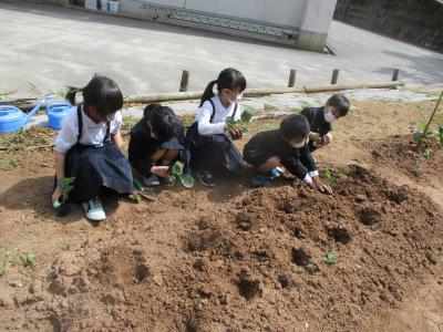 子どもたちは1つ1つ丁寧に植えてました。大きくなるのが楽しみです。