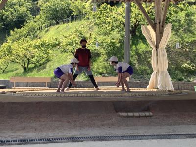 相撲の礼儀について学んだり、実際に道場で取り組みの練習をしたりしました。