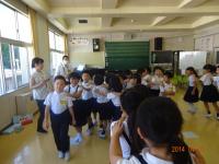 お迎えする側の、現在の1年生14人は、緊張しつつも、張り切ってお迎えすることができました。年長さんの手を引いて案内したり、2年生の賛助を得て楽器演奏を披露したり、迫力あるダンスを見せたりしました。飯田小クイズも盛り上がりましたね。学校探検は、初めての挑戦でしたが、みんな転ばずに3階まで行って帰ってこれました。よく頑張った1年生でした。もう先輩の貫録がありましたね。