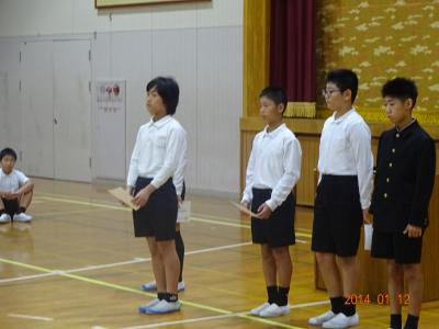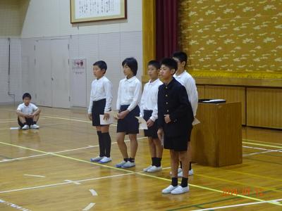 保健、給食、放送、図書各委員会と、児童会の委員長が代表して任命状を受け取りました。そして、後期の活動に向けて、所信表明を行いました。