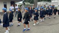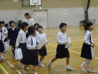 歓送は、5年生から3年生までの鼓笛隊演奏に続き、6年生からの「木遣り歌」と曳山の巡行が披露されました。子どもだけでなく大人も一緒に木遣り歌を歌い、引っ張り、今年最後の飯田っ子とろ山祭りが開かれました。卒業生の皆さん、中学校でも、元気に仲間の輪を広げて活躍してください。